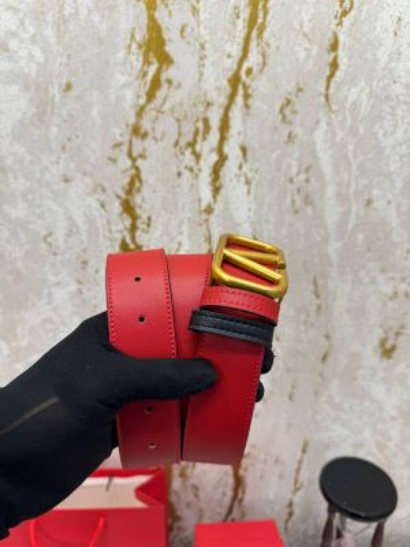 Valentin_o Garavani Leather Belt V-Logo Buckle With Box And Dust Bag Including Carry Bag (RED-v37)