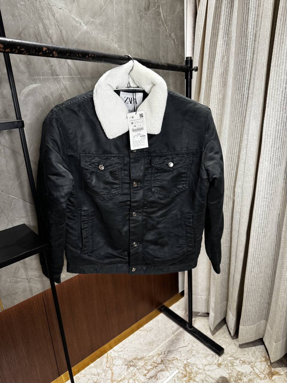 Zar_a Black Jacket Heavy Quality With Fur Collar